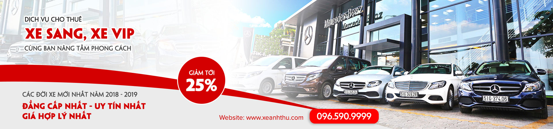 Công ty với trên 12 năm kinh nghiệm trong lĩnh vực cho thuê xe, chúng tôi luôn là sự lựa chọn hàng đầu cho khách hàng trong mỗi chuyến tham quan, du lịch, cưới hỏi, công tác, đưa đón cán bộ,… Xe chúng tôi không chỉ cung cấp các dịch vụ cho thuê xe chuyên nghiệp, giá cả phải chăng mà còn có nhiều ưu đãi cũng như chính sách đãi ngộ phù hợp gửi đến khách hàng.